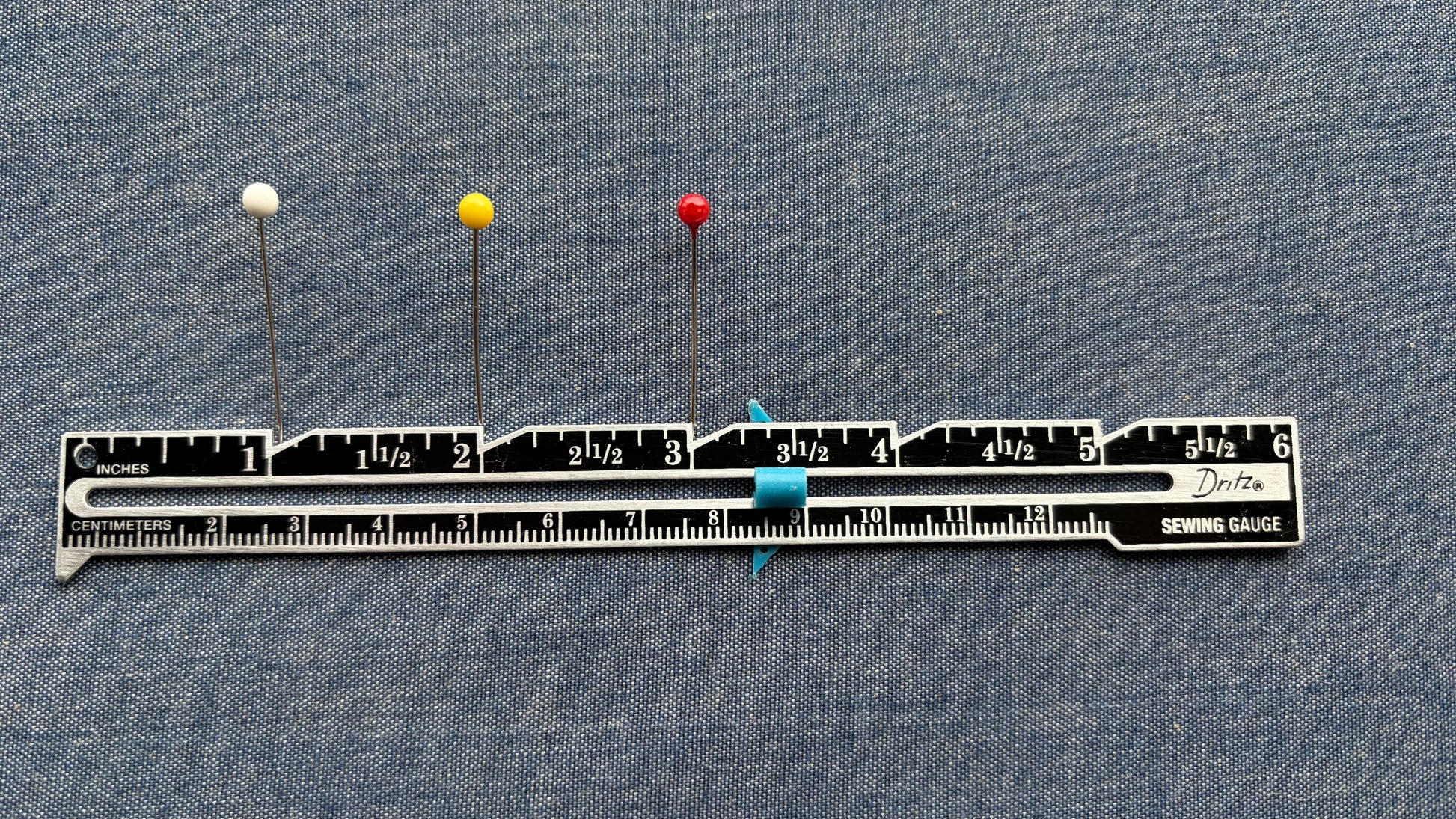 This Dritz gauge takes away immense frustration, especially if your eyesight is not the best. Slide the blue marker to your width and forget it.